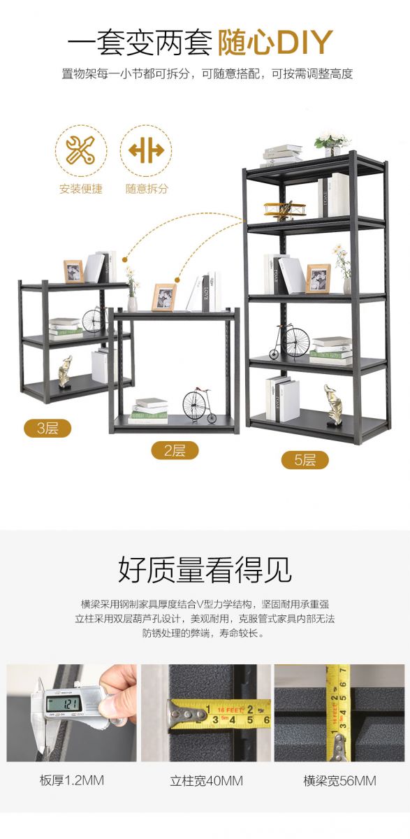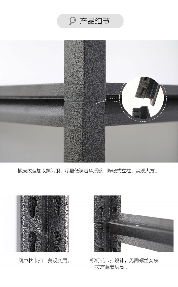-承重:立柱横撑斜撑加强焊接,不易脱焊,超强载重,稳定储物