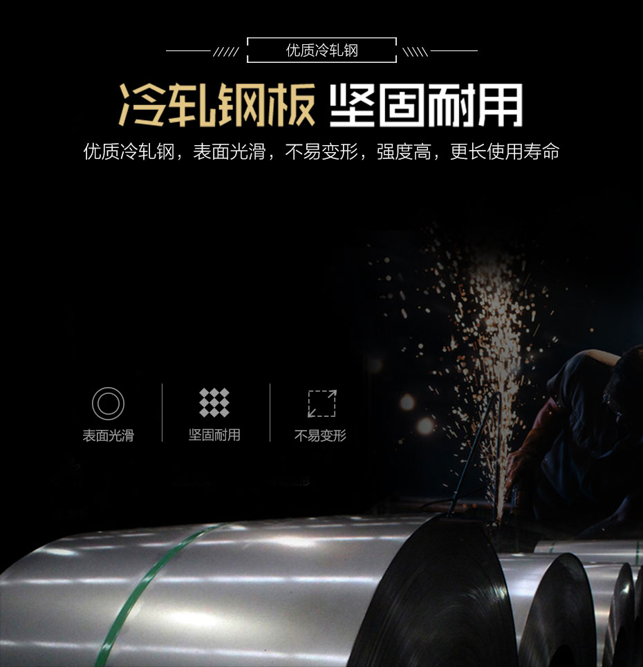- 选用上海宝钢一级冷轧钢板,表面光滑,强度高,使用寿命长